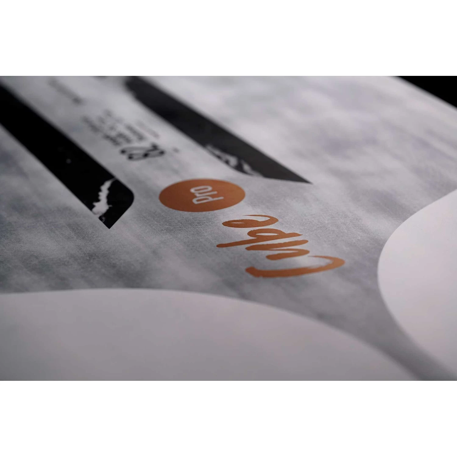 La construction Pro Carbon S-Glass est livrée avec un noyau EPS. Spécifications de pont avec Sandwich Full Deck FDS et Sandwich Full Rail FRS en simple épaisseur pour une flexibilité impeccable, une longévité irréprochable et un poids ultra léger, Double Sandwich Stance DSS? et renforts en bois de 0,6 mm pour une rigidité impeccable autour des sangles de pied.